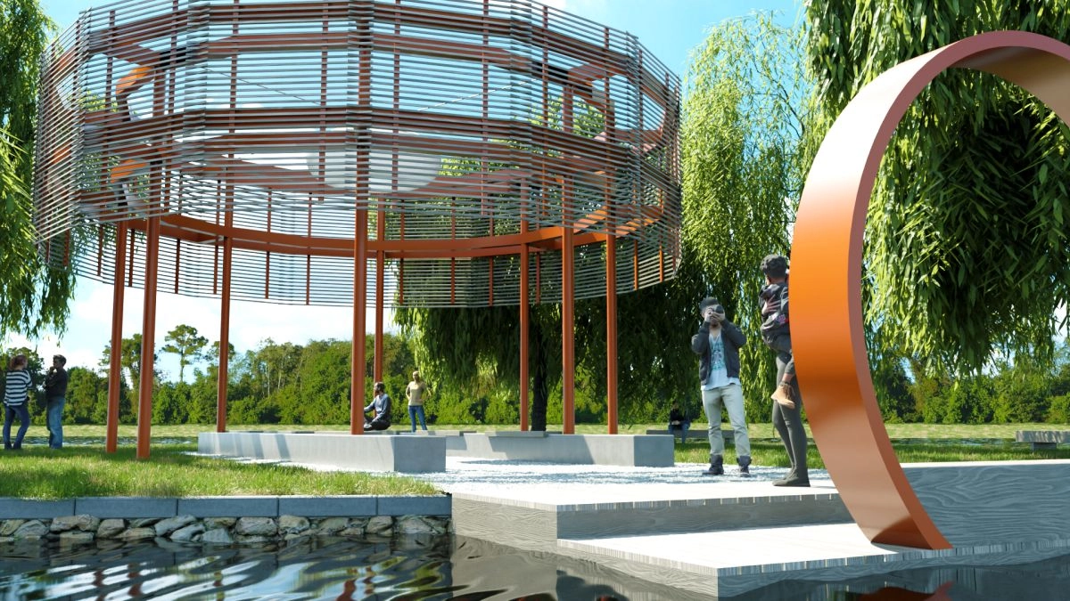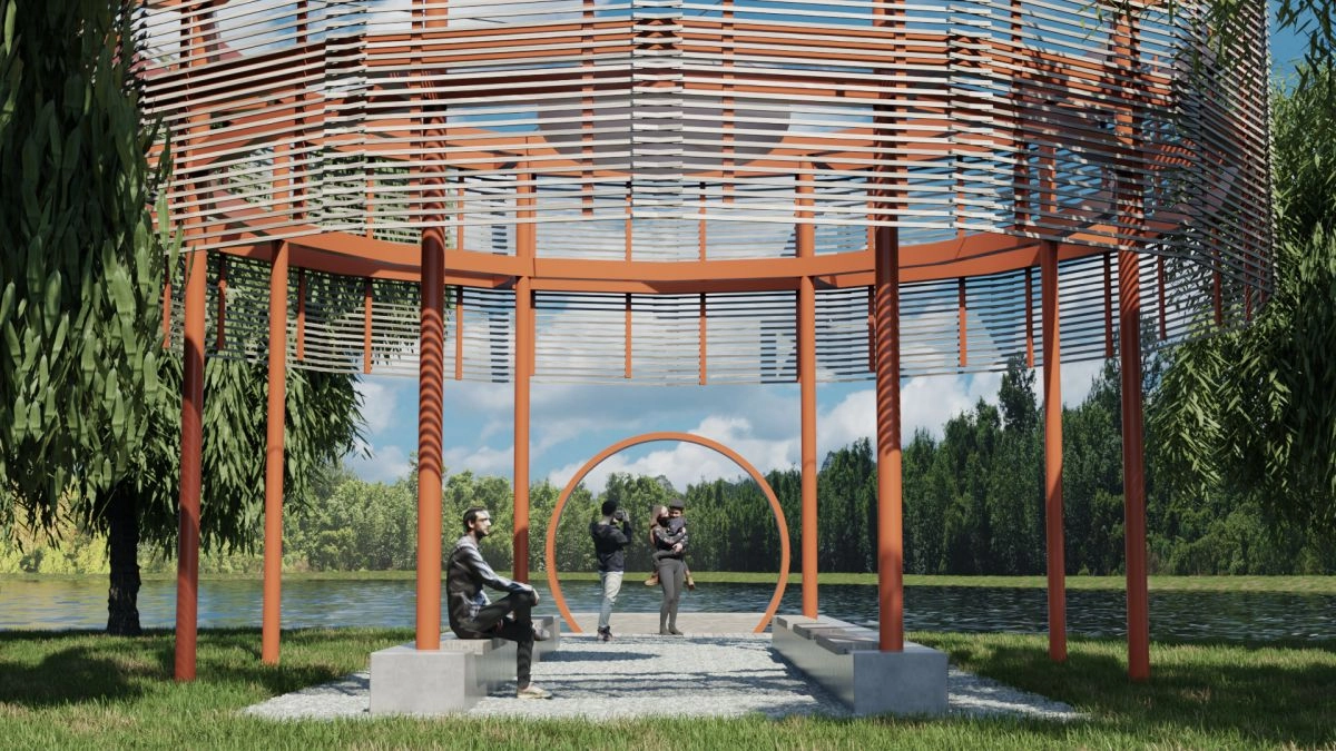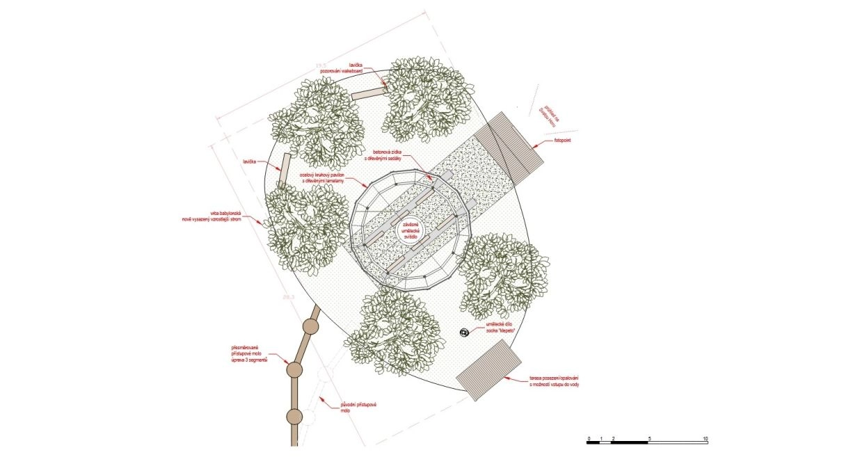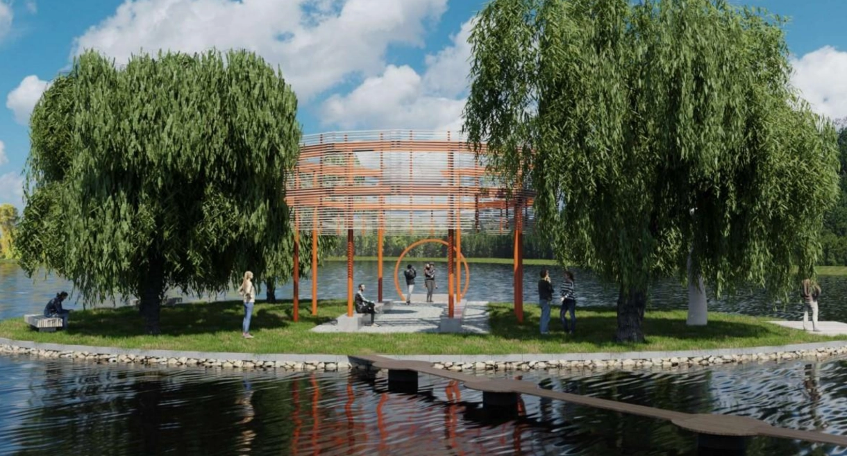Studie Nový rybník navrhuje proměnu ostrova v inspirativní místo pro odpočinek a setkávání. Vychází z historie, pracuje s vrbovým kruhem a vizuální osou ke Svaté Hoře. Dominantou je kruhový pavilon s molem. Zakázkové prvky a motiv raka vytvářejí jednotný příběh a novou identitu místa.